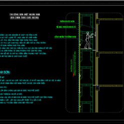 - Bản vẽ trát tường: Các mặt cắt tường thể hiện độ dày lớp trát, biện pháp chống nứt tại các vị trí tiếp giáp vật liệu khác nhau (ví dụ: gạch và bê tông).