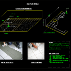 - Bản vẽ ốp lát: Chi tiết mặt bằng lát gạch, hướng lát, vị trí mạch ngừng, ron gạch, cách xử lý các vị trí cắt góc, bậc thang, và cao độ hoàn thiện.