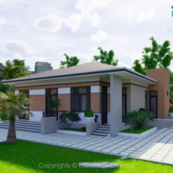 Bản vẽ biệt thự 1 tầng mái nhật phong cách hiện đại gồm: 1 phòng thờ, 2 phòng ngủ, 1 phòng khách, 1 bếp +ăn, 1 wc