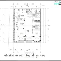 Công năng: 01 P. hớt tóc, 01 P. Thờ, Khu vực sinh hoạt, 02 Phòng ngủ, 01 P. Bếp + Ăn, 02 P. Vệ Sinh