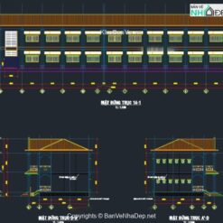 Bản vẽ cad thiết kế trường tiểu học khối 10 phòng học 2 tầng 51.85×9.5m và khối bán trú 32×6.2m