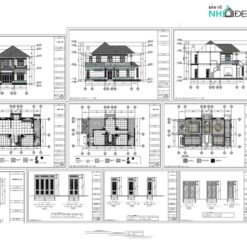 Bản vẽ chi tiết biệt thự 2 tầng hiện đại mái nhật 8×13.5m