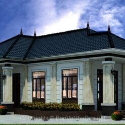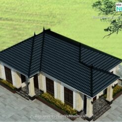 Bản vẽ thiết kế kỹ thuật thi công phần ảnh 3D ngoại thất, kiến trúc, kết cấu, điện nước nhà biệt thự 1 tầng mái nhật kích thước: 10.52×17.27m