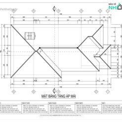 Bản vẽ chi tiết biệt thự hiện đại tầng mái nhật 8.3x16.3m