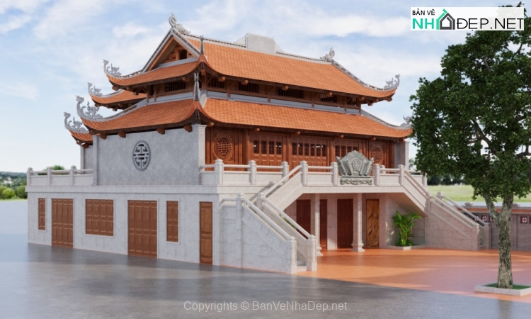 Bản vẽ chùa 2 tầng – Hà Nội ( Tổng diện tích: 500m2)