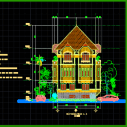 Bản vẽ thiết kế Biệt thự 13×8.6m x 3 tầng – có tầng hầm