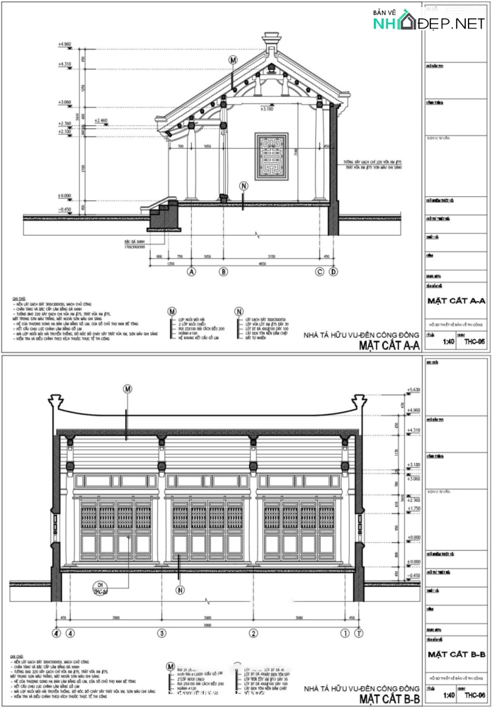 Bộ bản vẽ thiết kế nhà thờ họ 3 gian kích thước 6×9.9m.