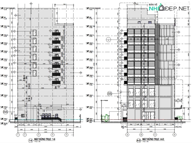Bản vẽ thiết kế khách sạn thông minh 10 tầng nổi 1 hầm 19.5x23m