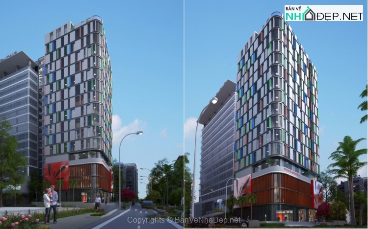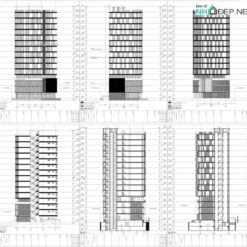 File Autocad kiến trúc tòa nhà văn phòng thiết kế 2 hầm 15 tầng nối kích thước 20x25m