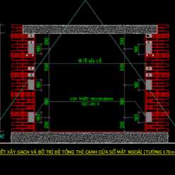 - Các vị trí gối cửa đi, cửa sổ mỗi bên phải chừa 4 vị trí xây gạch đinh để bắt bát cửa. Kích thước lỗ mở cửa bằng kích thước của cửa cộng thêm mỗi bên 15mm, là độ hở để thao tác khi lắp dựng khung cửa.(5mm đối với cửa gỗ và 15mm đối với cửa nhôm)(Xem them spec,Tùy theo mỗi dự án sẽ khác nhau )