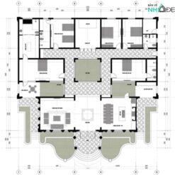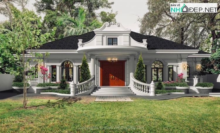 Biệt thự tân cổ điển 1 tầng cực đẹp. 5 phòng ngủ. Có file cad chi tiết kiến trúc, kết cấu.