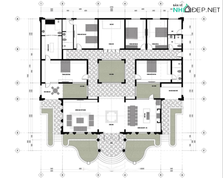 Biệt thự 1 tầng kích thước 23.7×19.2m 5 phòng ngủ