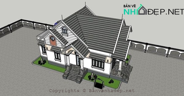 Công năng: Phòng khách, bếp + ăn, 3 phòng ngủ, phòng thờ, wc, để xe máy.
