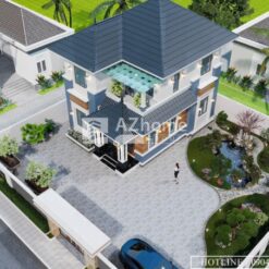 Nhà 2 tầng mái Nhật kích thước:10.5×12 m có đầy đủ ảnh 3D phối cảnh ngoại thất kèm theo. Công năng sử dụng như sau: +) Tầng 1: 01 phòng khách, 01 phòng bếp + ăn, 01 phòng ngủ, cầu thang, 01 wc khép kín ( 01 WC chung bố trí riêng ngoài nhà chính) +) Tầng 2: 03 phòng ngủ, 01 phòng sinh hoạt chung, cầu thang, 01 phòng wc chung Ai muốn lấy đầy đủ thiết kế tham khảo thi công ib nhắn tin vào tin nhắn chờ mình gửi cho tham khảo nhé