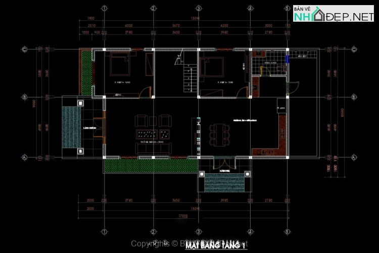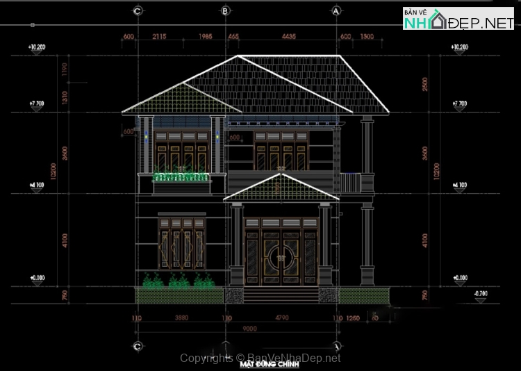Full bản vẽ thiết kế kỹ thuật thi công nhà mái Nhật 2 tầng kích thước: 9.x17m. Công năng sử dụng như sau: