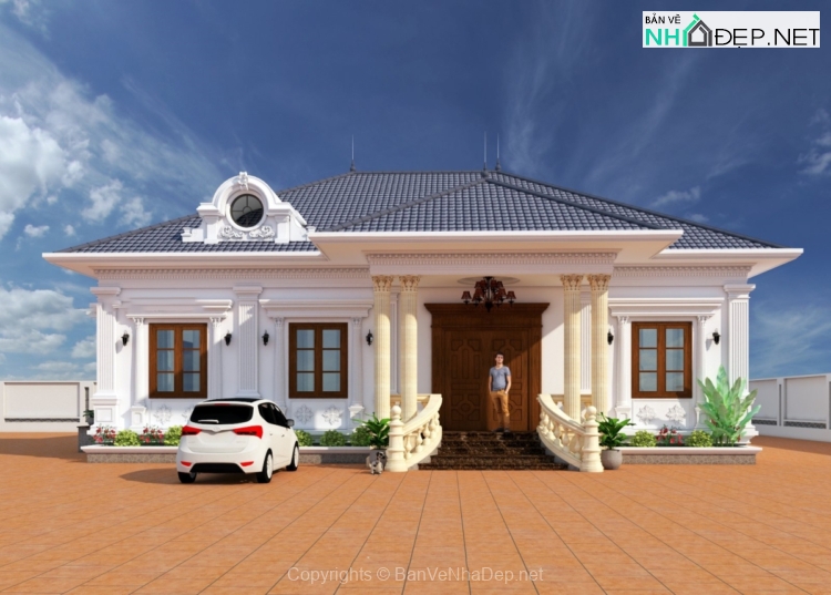 Biệt thự nhà vườn cấp 4 tân cổ điển file download về bao gồm: file autucad kiến trúc ( bản vẽ mặt bằng, mặt đứng) + file su file phối cảnh + file phối cảnh công trình