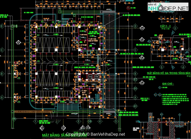 Bộ bản vẽ cad toà nhà 14 tầng + bán hầm, diện tích sàn 1000m2, móng cọc và hạng mục phụ trợ