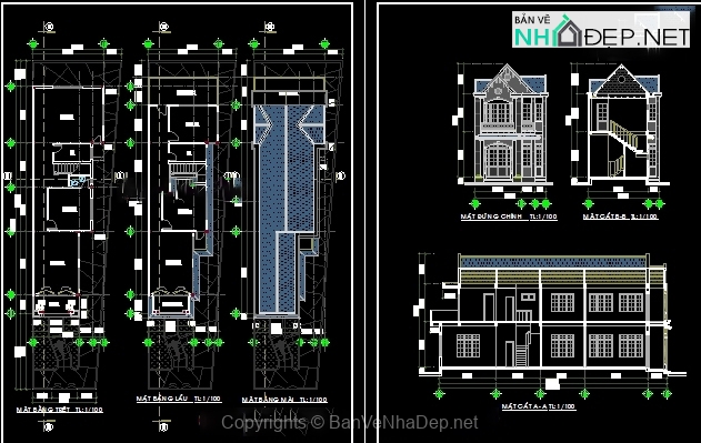 File cad kiến trúc thiết kế biệt thự 2 tầng rộng 5.6m miễn phí