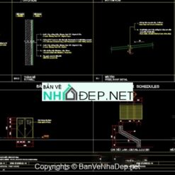 Hồ sơ kiến trúc bao gồm: mặt bằng tổng thể, bảng vật liệu hoàn thiện, mặt bằng mái, mặt bằng trích đoạn, mặt bằng bố trí công nghệ, mặt bằng mương, đầy đủ các phòng điện, phòng vệ sinh, mặt đứng, mặt cắt, và các mặt đứng mặt cắt trích đoạn,… và còn nhiều chi tiết khác, rất tốt để tham khảo.