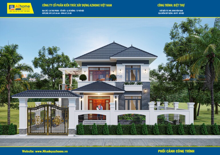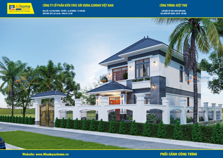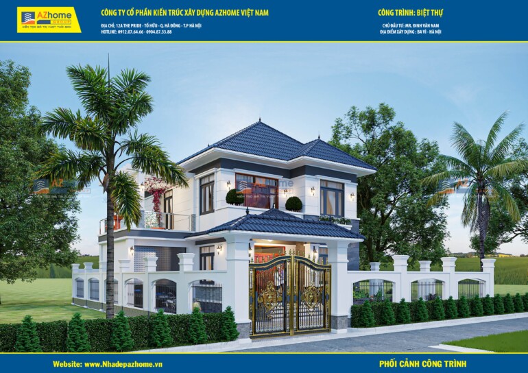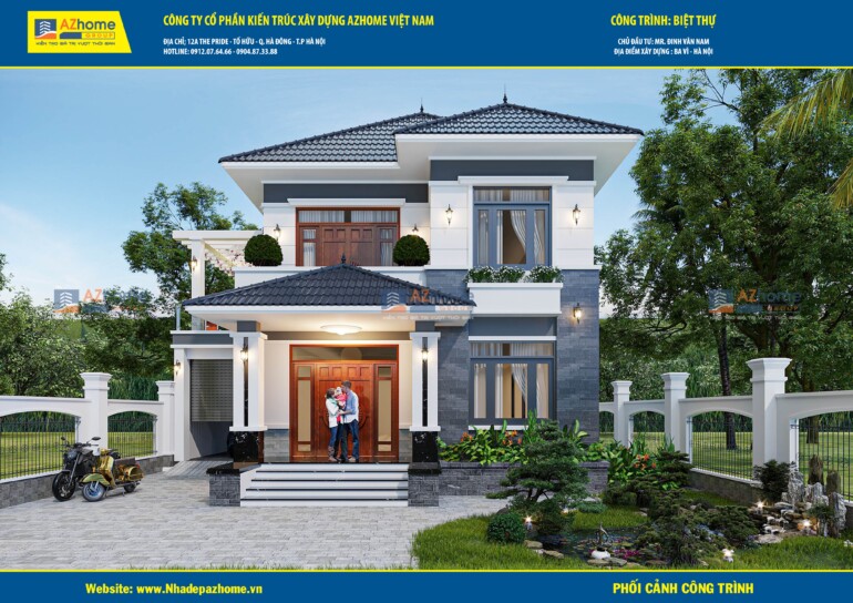 Bản vẽ Biệt thự 2 tầng phong cách mái Nhật đang rất thịnh hành