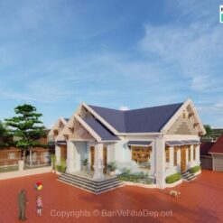 Hồ sơ thiết kế biệt thự mái thái 1 tầng kích thước 13.18x13.65m
