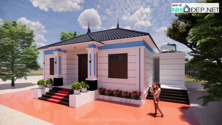 Công năng: P.Khách, Bếp + ăn, 3 ngủ, khu wc + tắm ngoài không chung nhà.