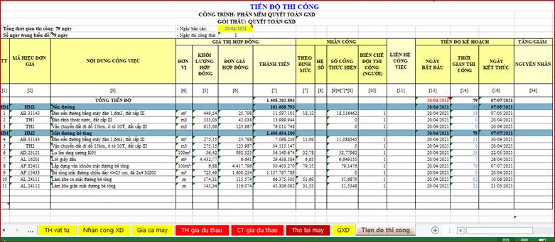Mã công việc cho công việc lập đơn giá dự toán và dự thầu