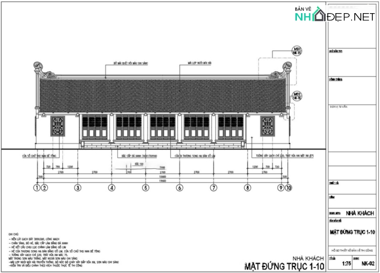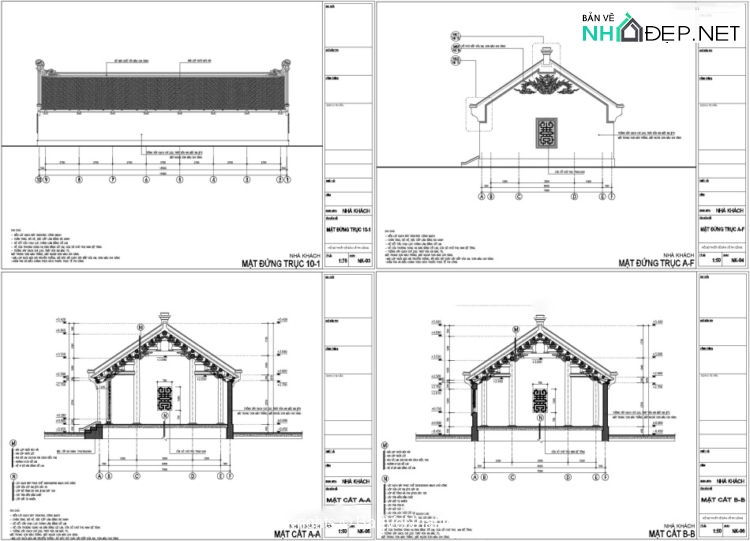 File autocad bản vẽ nhà thờ cổ đền thờ 5 gian 2 chái thiết kế đình đền làng cổ kích thước 7.2x20m