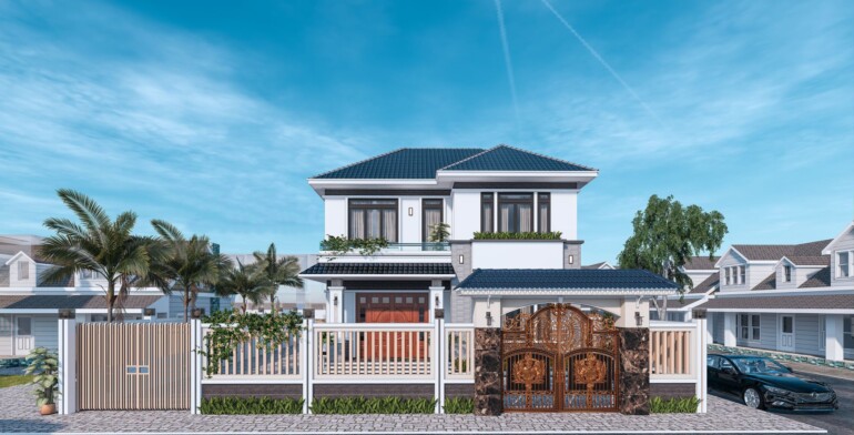 Mẫu biệt thự mái Nhật 10,52x12m.