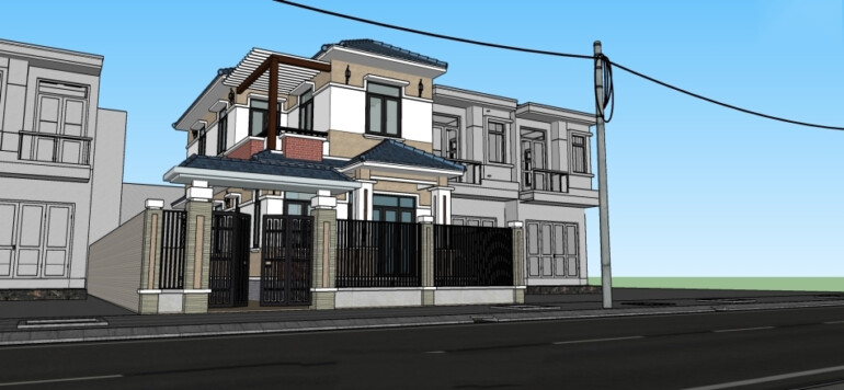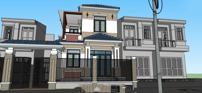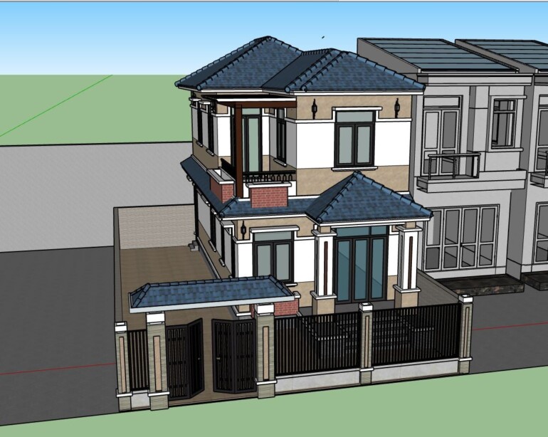 Hồ sơ thiết kế Mẫu Nhà 2 tầng mái Nhật 6×13.2m (Full hạng mục cad + Sketchup)