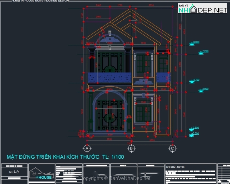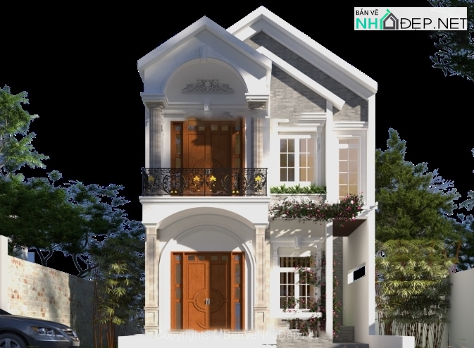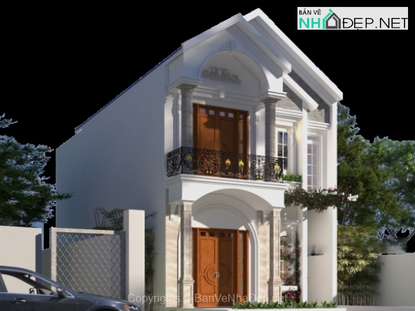 Hồ sơ thiết kế thi công mẫu nhà phố 2 tầng mái thái 7.5x20m đầy đủ bản vẽ pdf, autocad, 3dmax, .skp