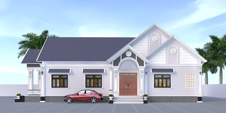 Mẫu nhà biệt thự mái Thái 1 tầng hiện đại