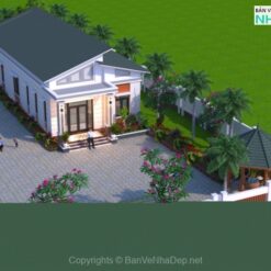 Biệt thự 1 tầng mái lệch thiết kế hiện đại, diện tích xây dựng 7.5x15m