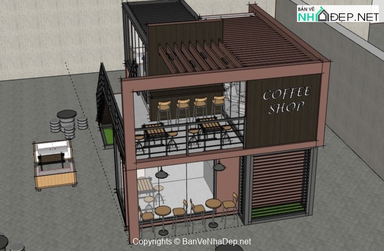 Mời mọi người cùng tham khảo mẫu nhà hàng coffee mình mới dựng xong trên phần mềm sketchup rất chi tiết, model dựng theo ý tưởng của mình, mọi người có thể dùng để tham khảo, phát triển thêm.