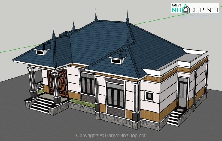 Mẫu thiết kế biệt thự 1 tầng mái Nhật 10.7×17.6m bao gồm file sketchup, file cad: kiến trúc, kết cấu.