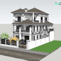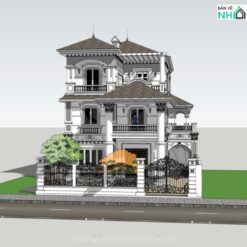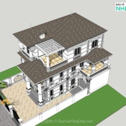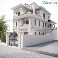 Hồ sơ thiết kế kiến trúc, kết cấu nhà biệt thự 3 tầng theo phong cách tân cổ điển. Không gian xanh xung quanh sẽ tạo sự gắn kết công trình với thiên nhiên.