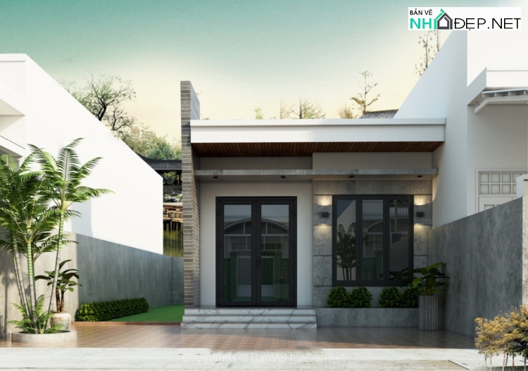 Có đầy đủ bản vẽ 3dsmax, sketchup, autocad kiến trúc, kết cấu nhà mái bằng 1 tầng kt 6×16.4m