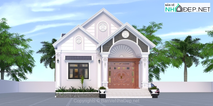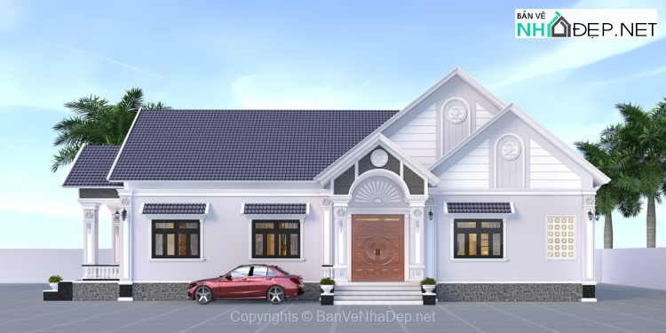 Hồ sơ bản vẽ nhà cấp 4 mái Thái hiện đại.