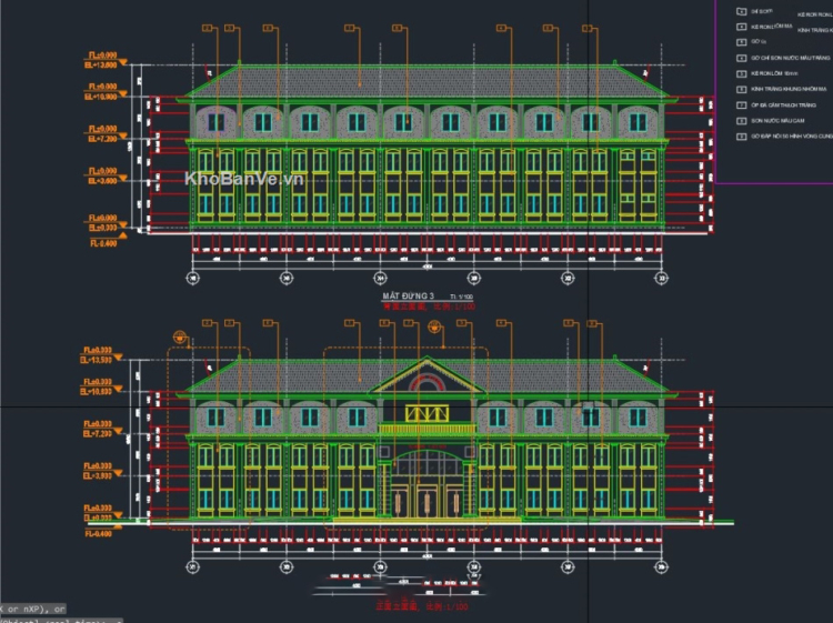 Hồ sơ kiến trúc bao gồm: Mặt bằng tổng thể, bảng vật liệu hoàn thiện, mặt bằng mái, mặt bằng trích đoạn, mặt bằng bố trí công nghệ, mặt bằng mương, chi tiết các phòng điện, phòng vệ sinh, mặt đứng, mặt cắt, và các mặt đứng mặt cắt trích đoạn,… và còn nhiều chi tiết khác, rất tốt để tham khảo. Chúc các bạn một ngày làm việc thật hiệu quả.