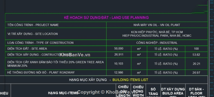 Full hồ sơ thiết kế thi công NHÀ MÁY VN OIL – XỬ LÝ DẦU NHỜN THẢI VÀ SẢN XUẤT DẦU GỐC API II. Bao gỒm các hạng mục: Kiến trúc, kết cấu, điện nước