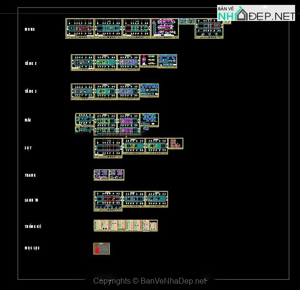 File cad nhà lô phố 3 tầng 4.5x20m cọc ép có đầy đủ bản vẽ kiến trúc, kết cấu, điện nước