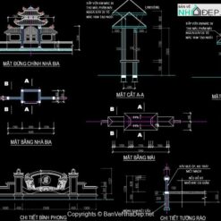 Mặt đứng, mặt bằng, mặt cắt, tường rào, đầu trụ, bình phong.