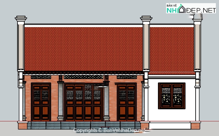 HSTK nhà tân cổ điển 2 tầng mái thái kích thước 6.5x11m, gồm file 3D (Sketchup) và file bổ kiến trúc (CAD).