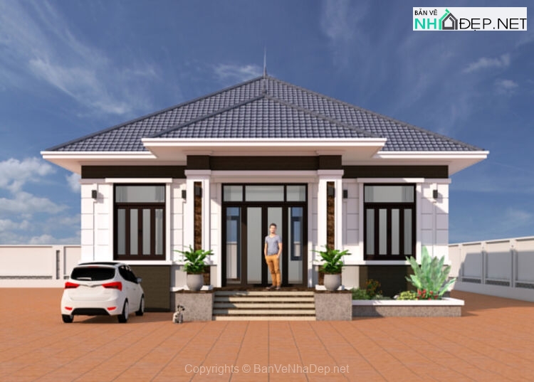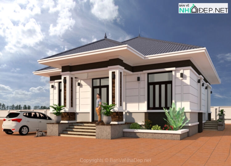 Thiết kế mẫu nhà một tầng phương án móng băng đơn giản.