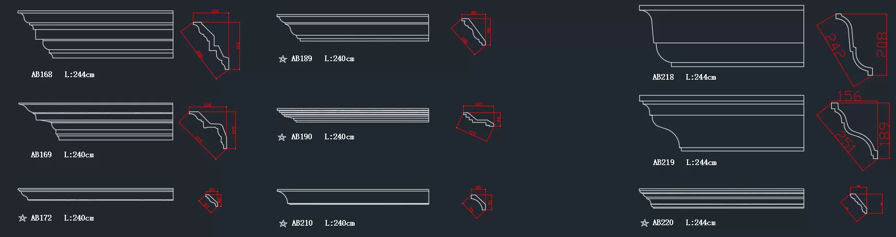 Thư viện Cad gờ phào chỉ kiến trúc là File tổng hợp các bản vẽ chi tiết phào chỉ được vẽ, thiết kế sẵn trên phần mềm CAD. File Cad này được sử dụng để phục vụ cho thiết kế chi tiết các vật liệu trang trí nổi trên tường, trần nhà như: trần gỗ, trần nhựa, thạch cao, ốp tường,…. Nó đươc sử dụng rộng rãi trong thiết kế thi công ngoại thất và nội thất nhà ở, biệt thự.