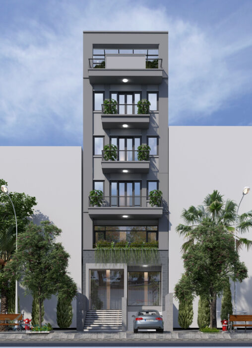 Nhà ở kết hợp văn phòng cho thuê 6 tầng 6.3×25.1 bản vẽ Autocad
