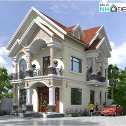 Trọn bộ hồ sơ thi công biệt thự mái thái 2 tầng 8,5m x 14,0m gồm phòng khách, bếp + ăn, 4 phòng ngủ, phòng sinh hoat chung, tắm, wc.