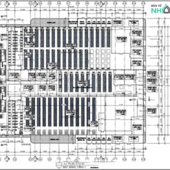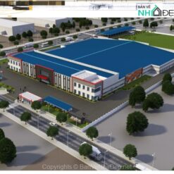 Bộ hồ sơ thiết kế nhà xưởng, nhà máy sản xuất linh kiện điện tử với đầy đủ các hạng mục: Xưởng chính bao gồm khối văn phòng, Nhà để xe máy 2 tầng, Nhà để xe ô tô, Trạm kiểm soát an ninh, chòi nghỉ ngoài trời, Hạ tầng cơ sở